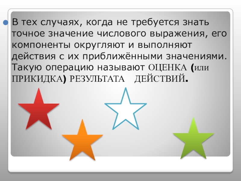 Слайд 9В тех случаях, когда не требуется знать точное значение числового выражения,