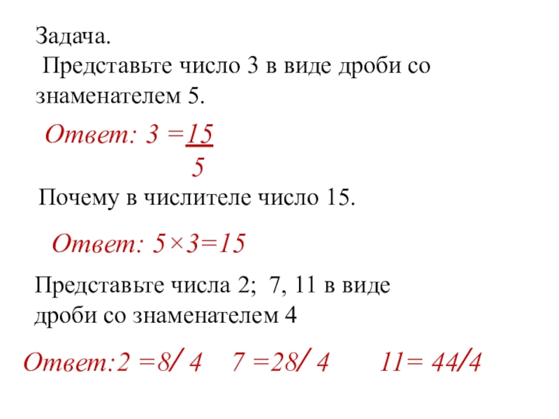 Представьте числа 2; 7, 11 в виде дроби со знаменателем 4