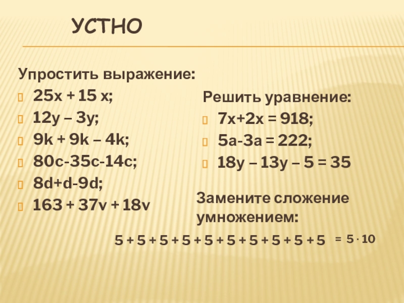 5 + 5 + 5 + 5 + 5 + 5 + 5 + 5 + 5 + 5