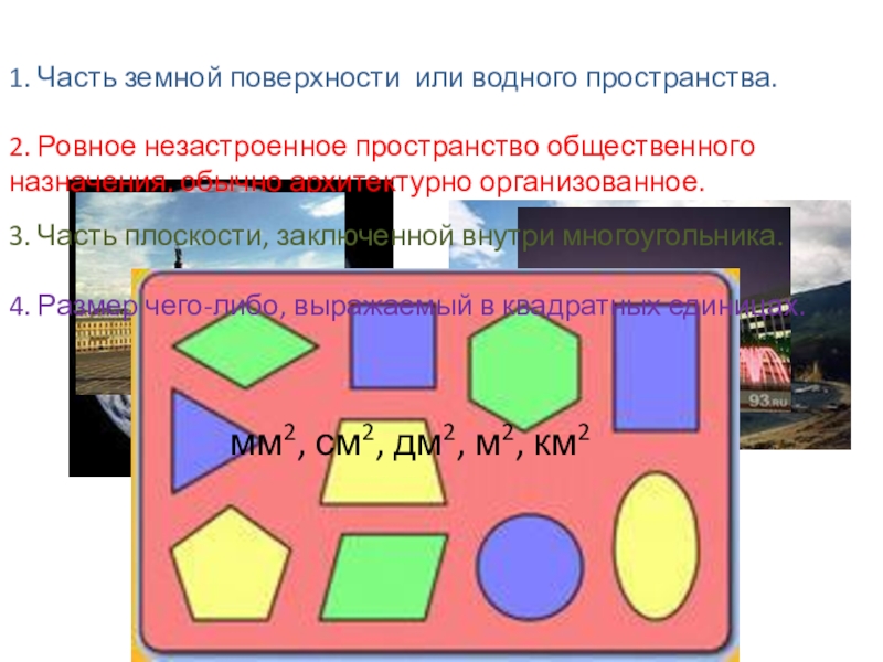4. Размер чего-либо, выражаемый в квадратных единицах.