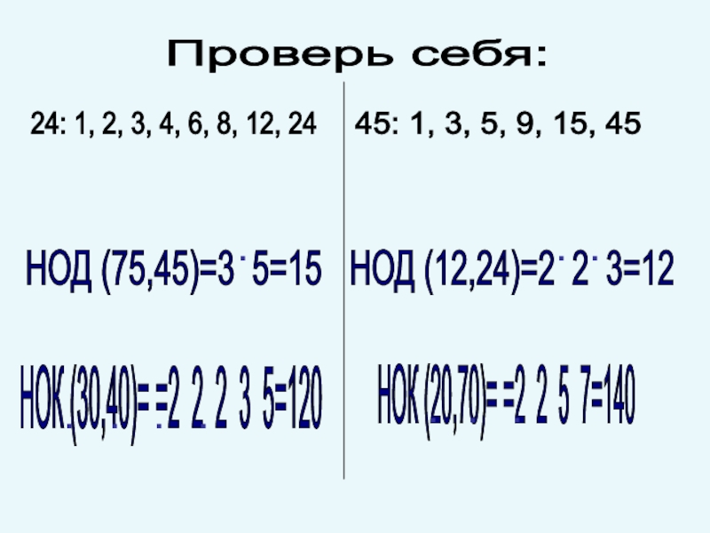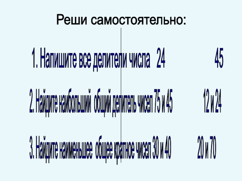 2. Найдите наибольший общий делитель чисел 75 и 45 12 и 24