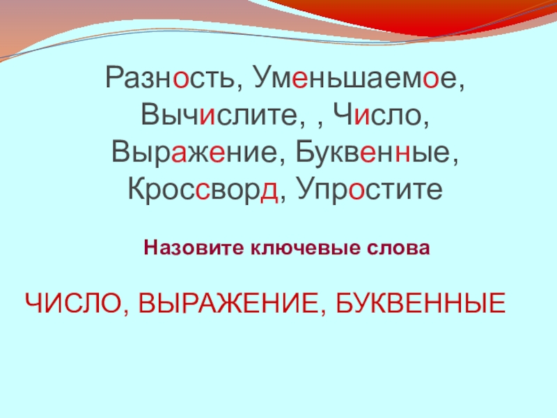 ЧИСЛО, ВЫРАЖЕНИЕ, БУКВЕННЫЕ