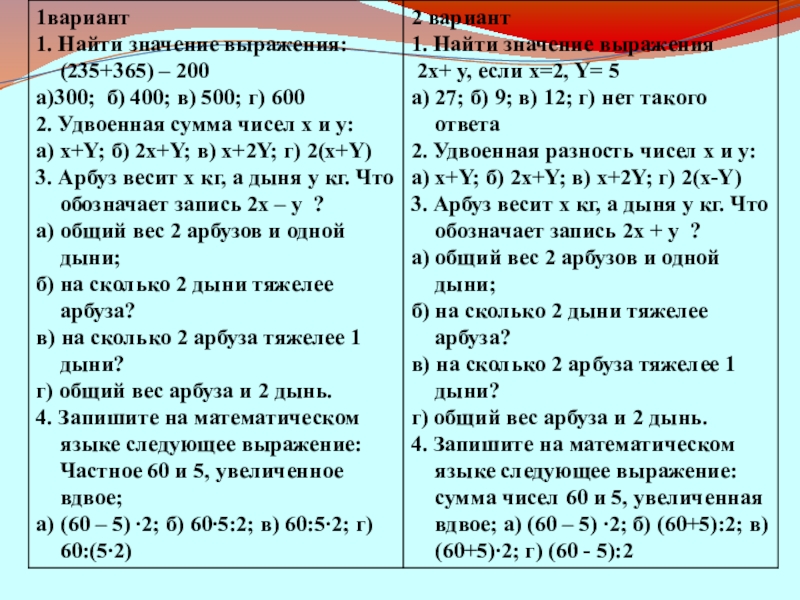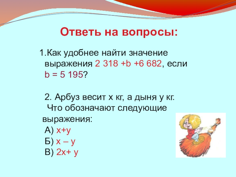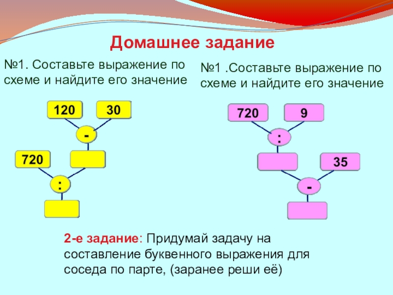 2-е задание: Придумай задачу на составление буквенного выражения для соседа по парте, (заранее реши её)