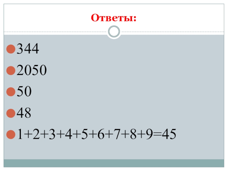 Ответы:344205050481+2+3+4+5+6+7+8+9=45