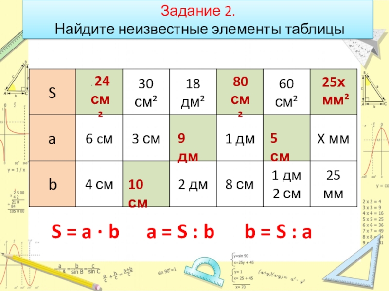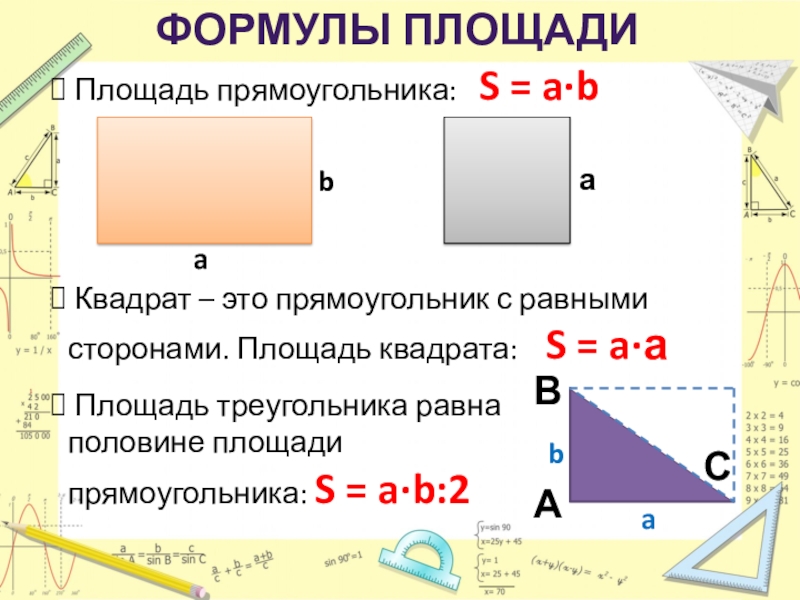 Площадь треугольника равна половине площади прямоугольника: S = a·b:2