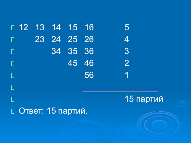 1. В теннисном турнире участвовали 5 человек. Сколько было сыграно