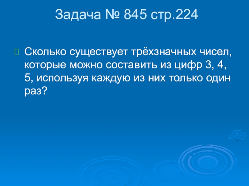 Задача № 845 стр.224 Сколько существует трёхзначных чисел, которые можно составить из цифр 3, 4, 5, используя