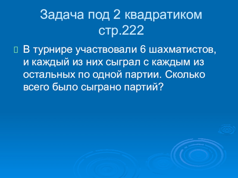 Задача под 2 квадратиком стр.222 В турнире участвовали 6 шахматистов, и каждый из них сыграл с каждым