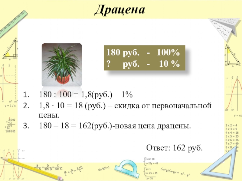 1,8 ∙ 10 = 18 (руб.) – скидка от первоначальной цены.