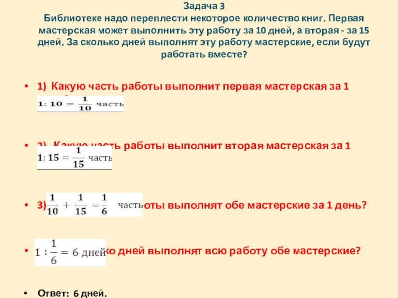 3) Какую часть работы выполнят обе мастерские за 1 день?
