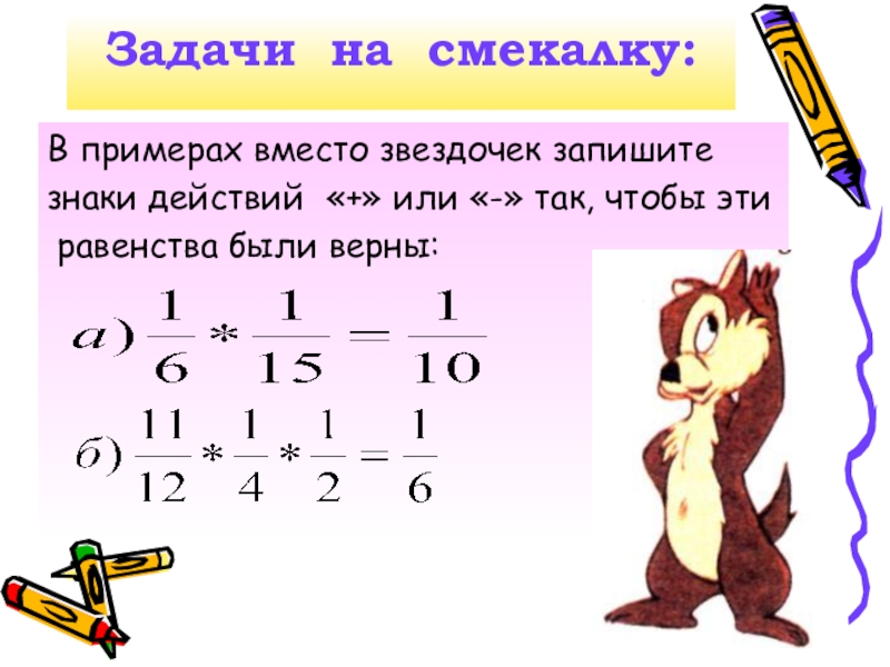 Задачи на смекалку:В примерах вместо звездочек запишите знаки действий «+» или «-» так, чтобы эти равенства были