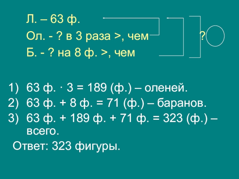 63 ф. + 189 ф. + 71 ф. = 323 (ф.) – всего.