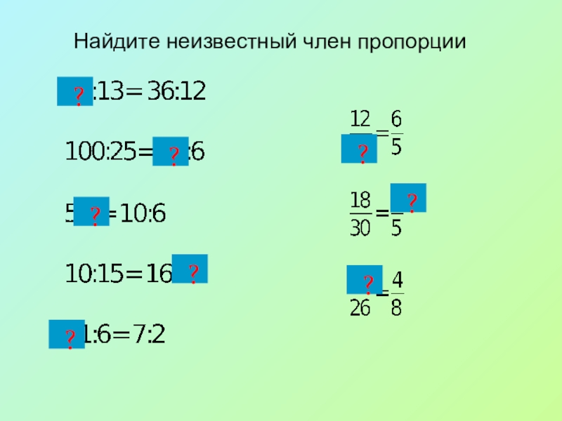 Х) …произведение крайних членов равно произведению средних членов пропорции.