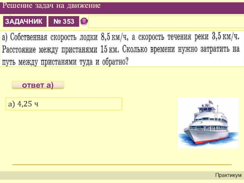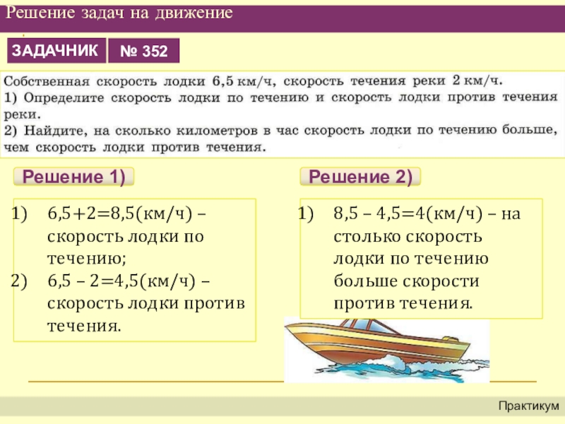 8,5 – 4,5=4(км/ч) – на столько скорость лодки по течению больше скорости против течения.