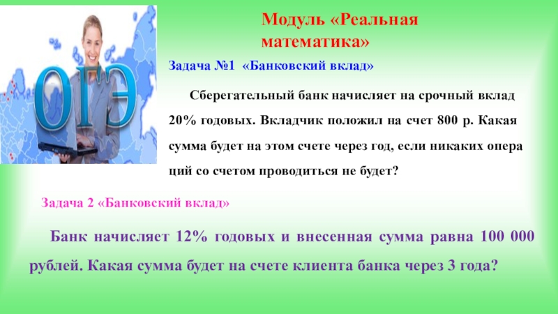 Банк начисляет 12% годовых и внесенная сумма равна 100 000 рублей. Какая сумма будет на счете клиента банка через 3 года?