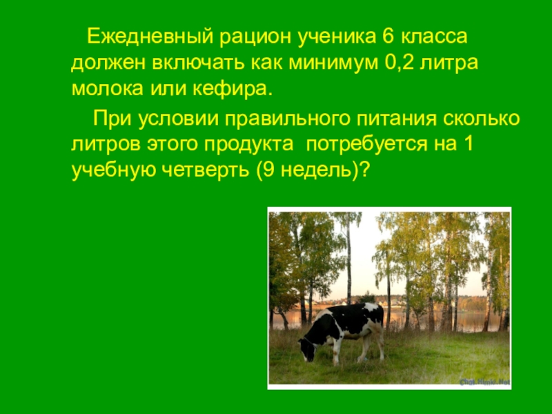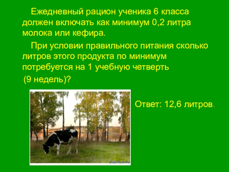 При условии правильного питания сколько литров этого продукта потребуется на 1 учебную четверть (9 недель)?