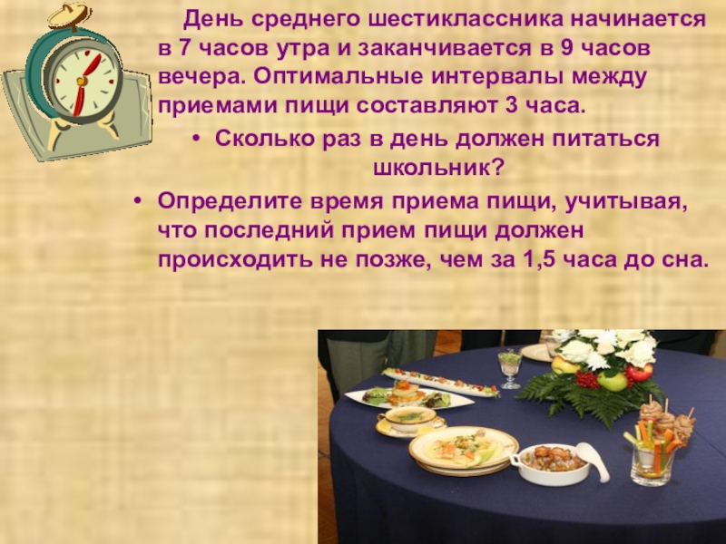 Слайд 9 День среднего шестиклассника начинается в 7 часов