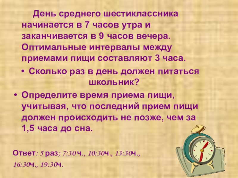 Слайд 10 День среднего шестиклассника начинается в 7 часов