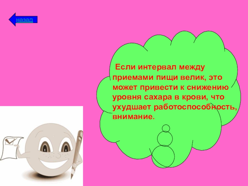 к снижению уровня сахара в крови, что ухудшает работоспособность, внимание.