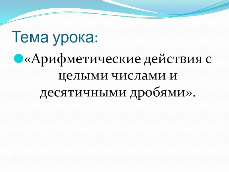 Тема урока:«Арифметические действия с целыми числами и десятичными дробями».