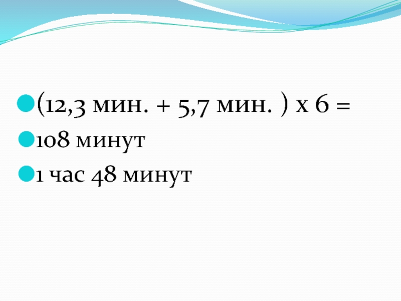 Слайд 7(12,3 мин. + 5,7 мин. ) х 6 =