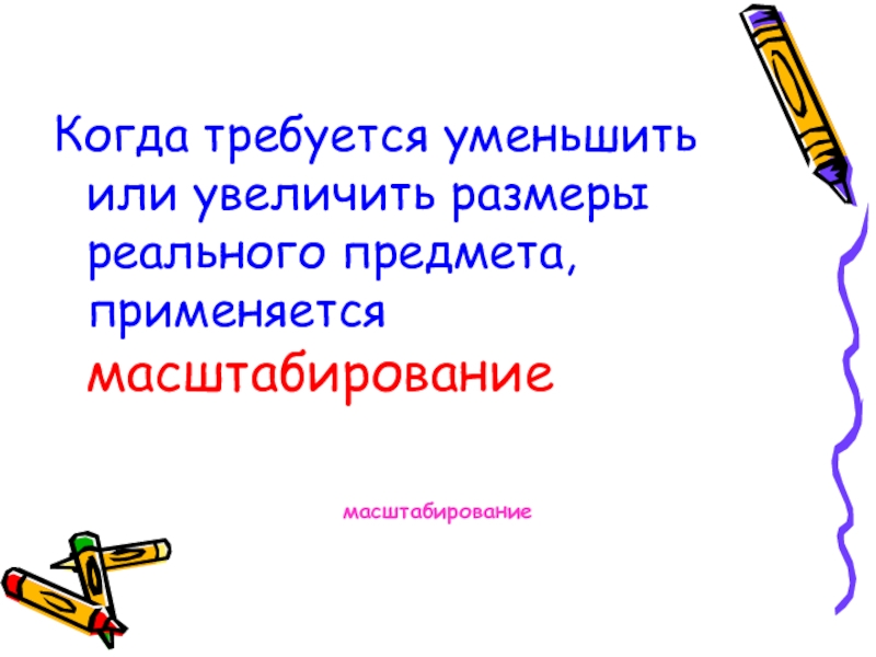 Слайд 8Когда требуется уменьшить или увеличить размеры реального предмета, применяется масштабирование