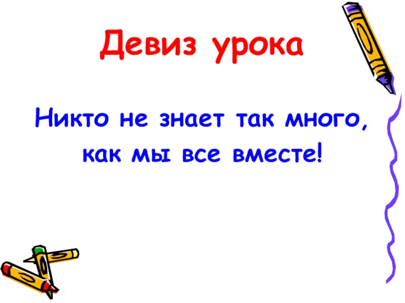 Девиз урокаНикто не знает так много, как мы все вместе!