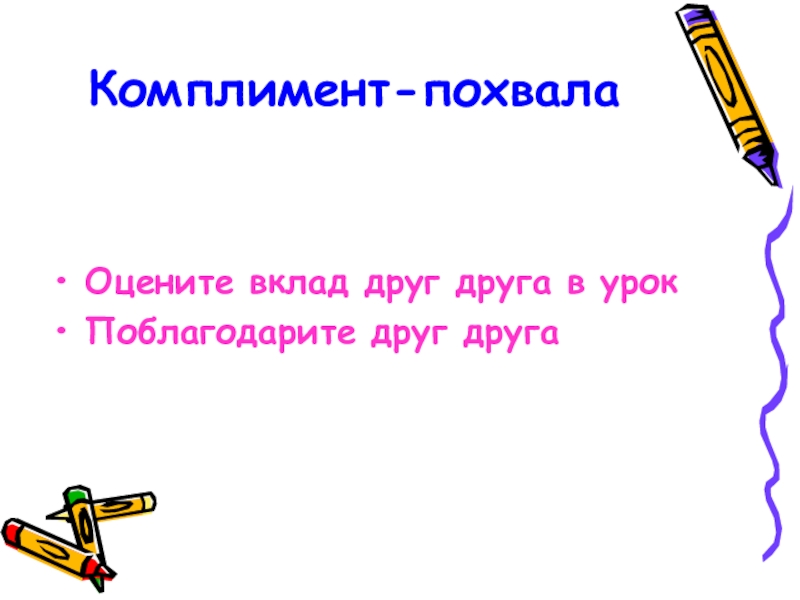 Комплимент-похвалаОцените вклад друг друга в урокПоблагодарите друг друга