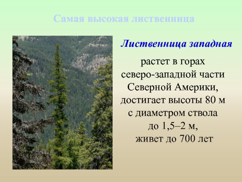 найдите в сети Интернет информацию о самой высокой лиственнице в мире