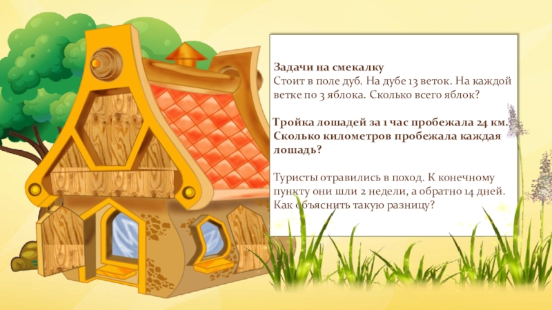 Макет заголовка и объектов с диаграммойЗадачи на смекалкуСтоит в поле дуб. На дубе 13 веток. На каждой