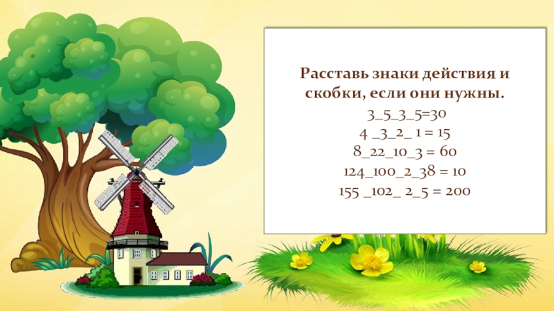 Макет заголовка и объектов с диаграммойРасставь знаки действия и скобки, если они нужны. 3_5_3_5=304 _3_2_ 1 =