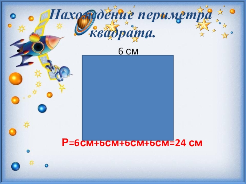 9 + 9 + 9 + 9 = 36 (см)Р = ?Начертить квадрат со стороной 9 см.