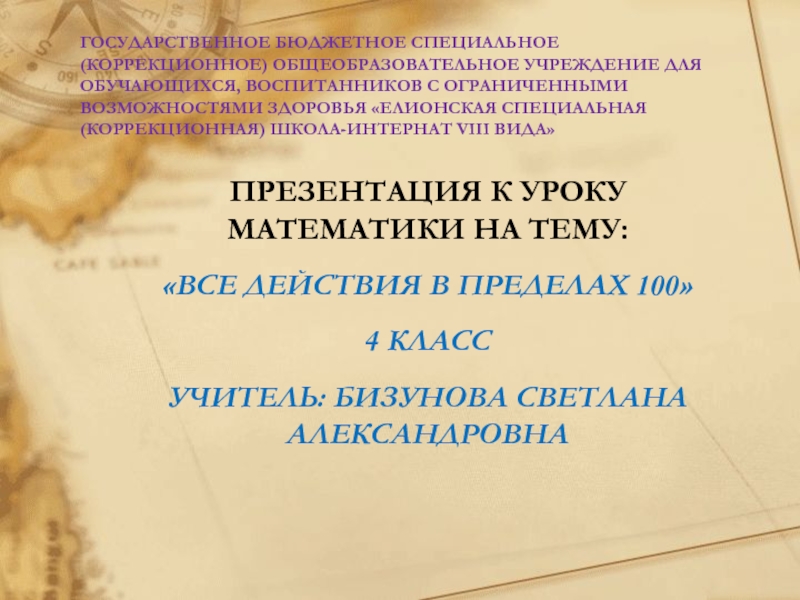 «ВСЕ ДЕЙСТВИЯ В ПРЕДЕЛАХ 100»