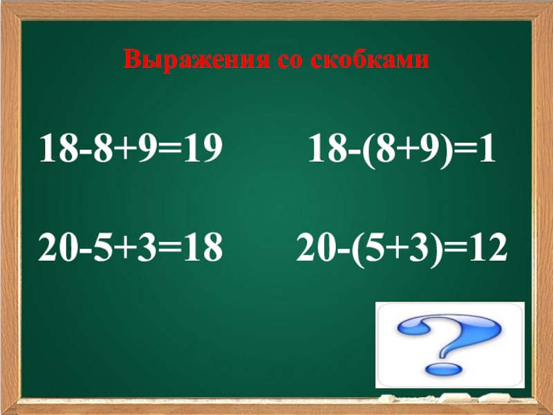 18-8+9=19      18-(8+9)=120-5+3=18     20-(5+3)=12Выражения со скобками