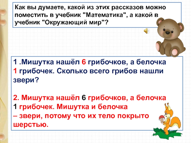 Как вы думаете, какой из этих рассказов можно поместить в учебник "Математика", а какой в учебник "Окружающий мир"?