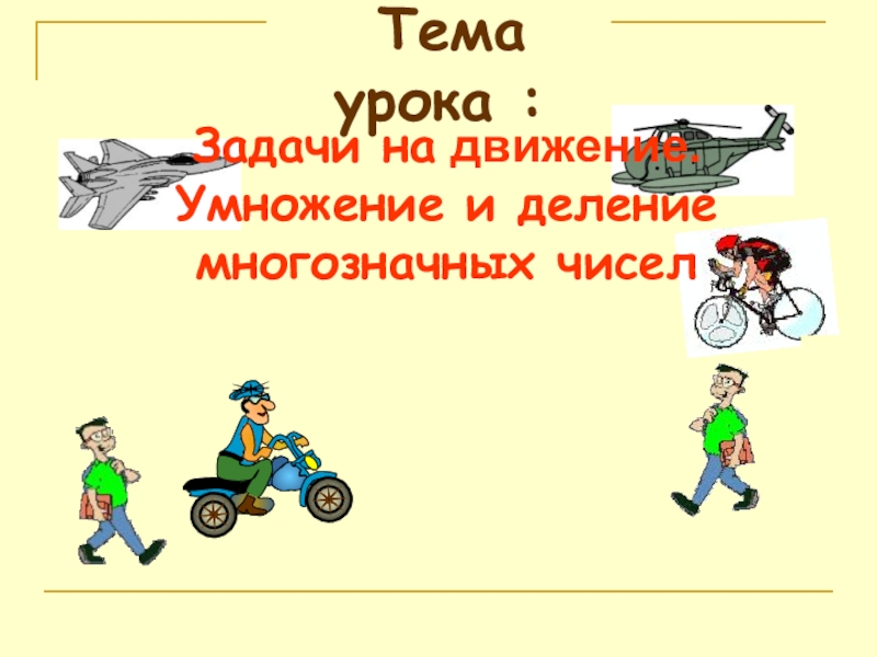 Тема урока :Задачи на движение.Умножение и деление многозначных чисел