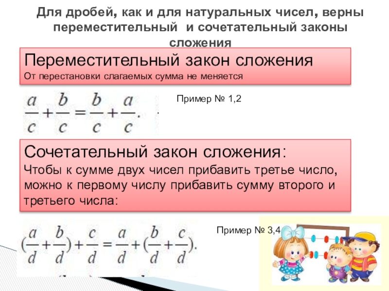 Чтобы к сумме двух чисел прибавить третье число, можно к первому числу прибавить сумму второго и третьего числа: