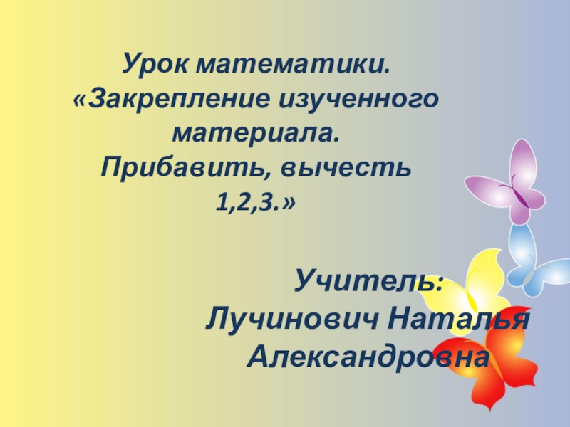 Урок математики.«Закрепление изученного материала.Прибавить, вычесть 1,2,3.»Учитель: Лучинович Наталья Александровна