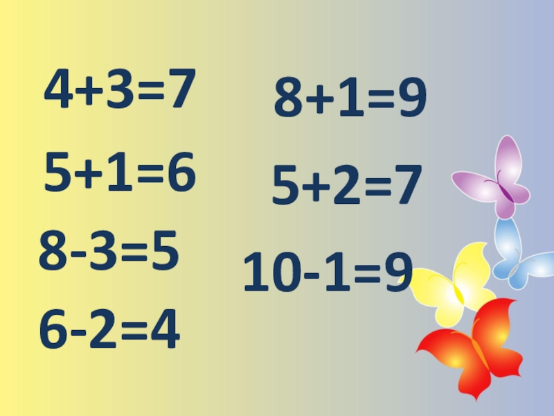 4+3=75+1=68-3=56-2=48+1=9 5+2=7 10-1=9