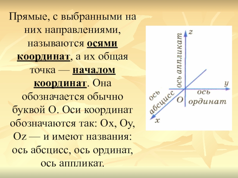 Слайд 4Прямые, с выбранными на них направлениями, называются осями координат, а их