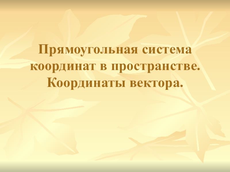 Слайд 1Прямоугольная система координат в пространстве. Координаты вектора.