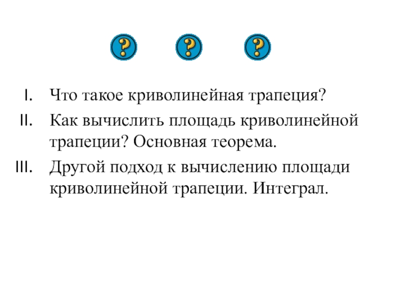 Что такое криволинейная трапеция?Как вычислить площадь криволинейной трапеции? Основная теорема.Другой подход к вычислению площади криволинейной трапеции. Интеграл.