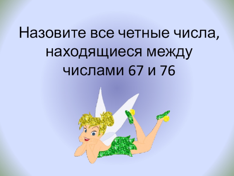 Слайд 9Назовите все четные числа, находящиеся между числами 67 и 76