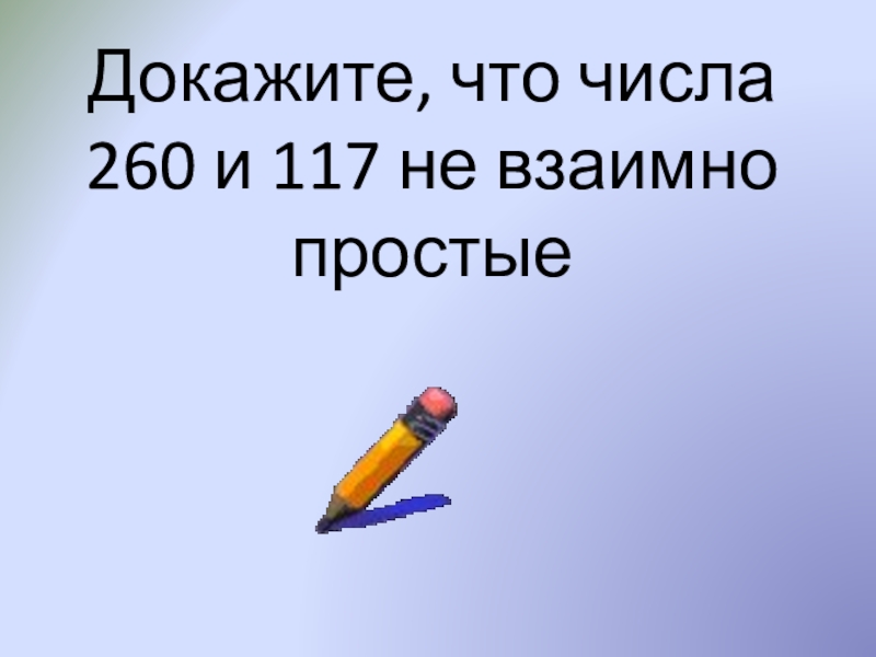 Слайд 22Докажите, что числа 260 и 117 не взаимно простые