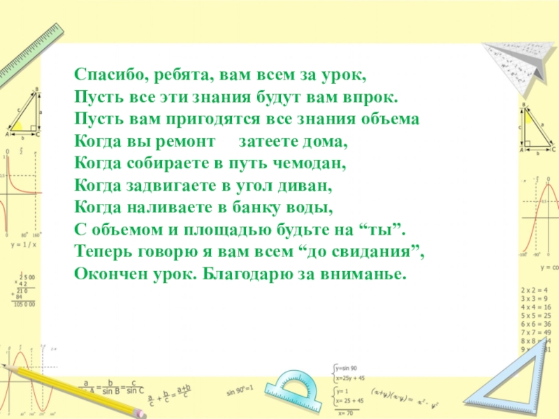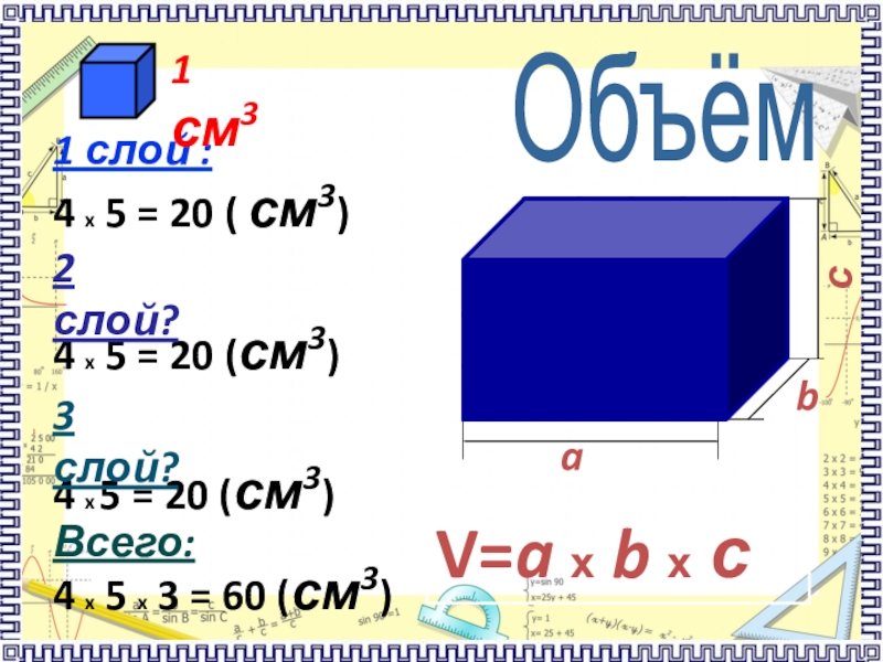 3. Если равные параллелепипеды имеют равные измерения, то их объёмы всегда…