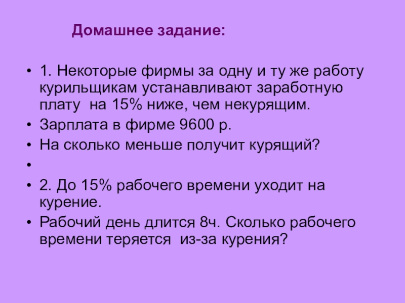 одну и ту же работу курильщикам устанавливают заработную плату на 15% ниже, чем некурящим.