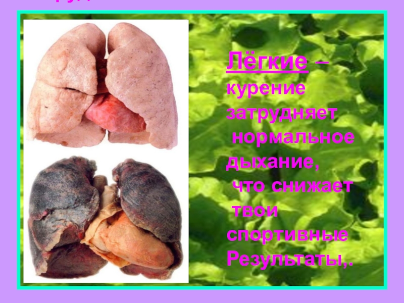 Слайд 8Сердце – курение сужает кровеносные сосуды, делая работу сердца по перекачиванию
