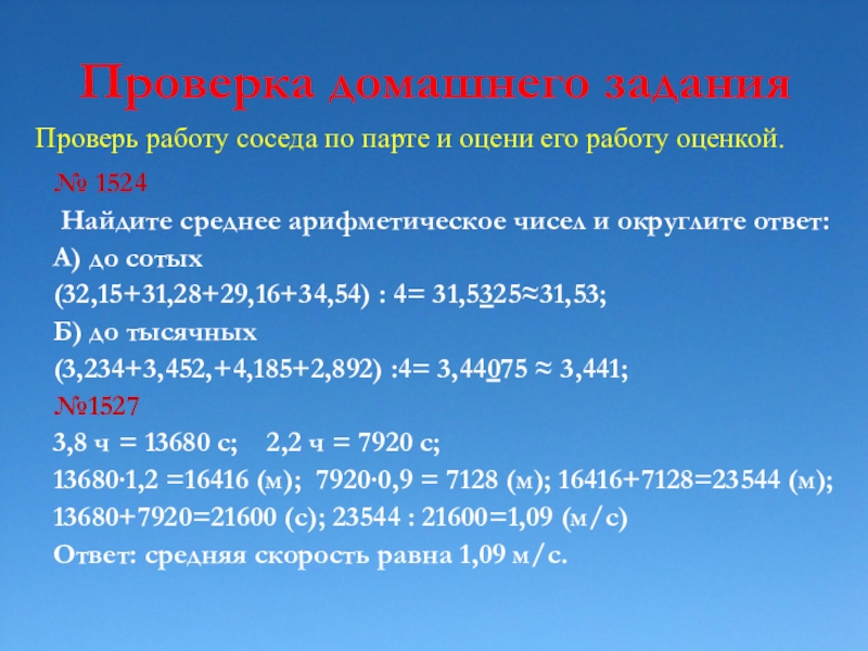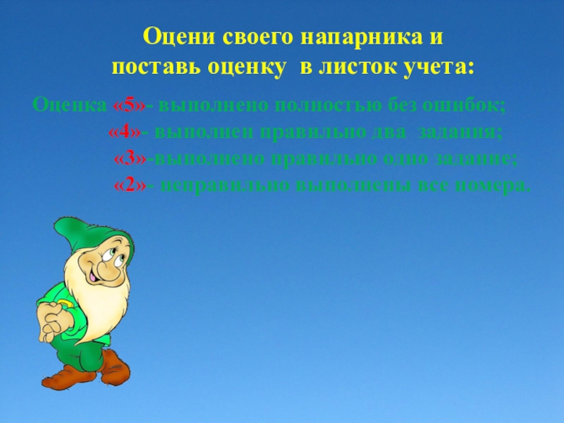 Проверь работу соседа по парте и оцени его работу оценкой.