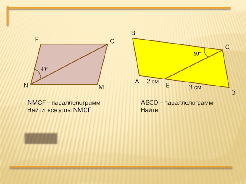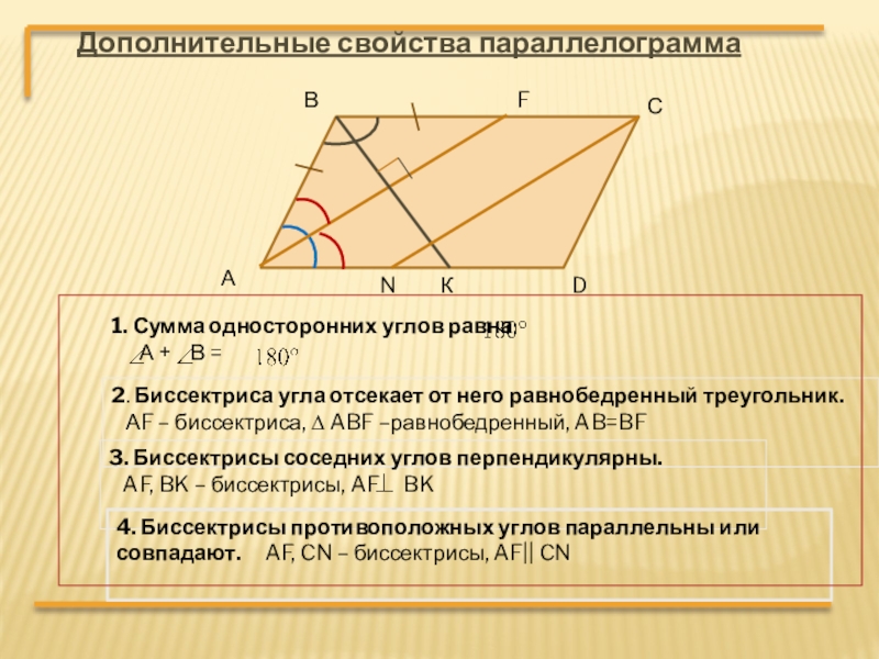 4. Биссектрисы противоположных углов параллельны или совпадают. AF, CN – биссектрисы, AF|| CN