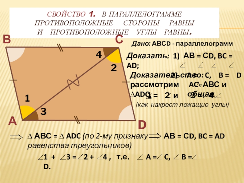 Доказательство: рассмотрим ∆ АВС и ∆ADC,